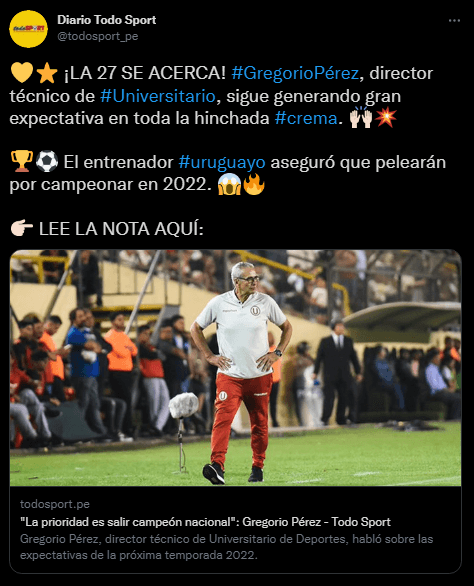 El encargado de la dirección técnica se pone las metas más próximas, anhela hacer una gran continuación de trabajo. Universitario de Deportes mediante su entrenador, se pone fuerte en la planificación para la siguiente temporada. Quieren hacer las cosas bien en la “Liga 1” y también en la Copa Libertadores.