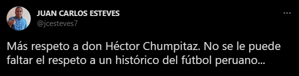 “No voy a ser ligero, pero voy a tratar de confirmar la información. Pero Héctor Chumpitaz ya no va más en Universitario de Deportes, es lamentable, un hombre que ha dado todo por la “U” ah. Y me lo han, re re reconfirmado”. Desde las redes sociales como era de esperarse, otros periodistas fueron explicando el tema más a fondo. Junto a la indignación evidente, por parte de los hinchas.
