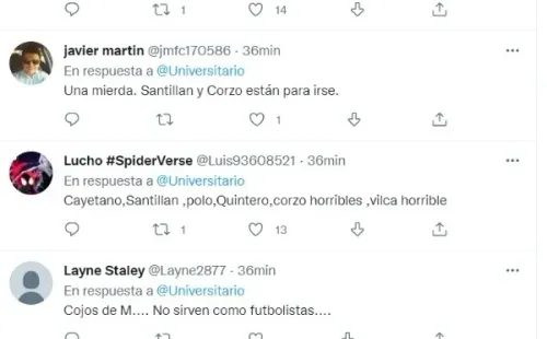 “Miguel Trauco urgente para sentar a Iván Santillán”, “Boten a Iván Santillán”, “Urgente una defensa”, fueron algunos comentarios de los fanáticos del conjunto de Ate.