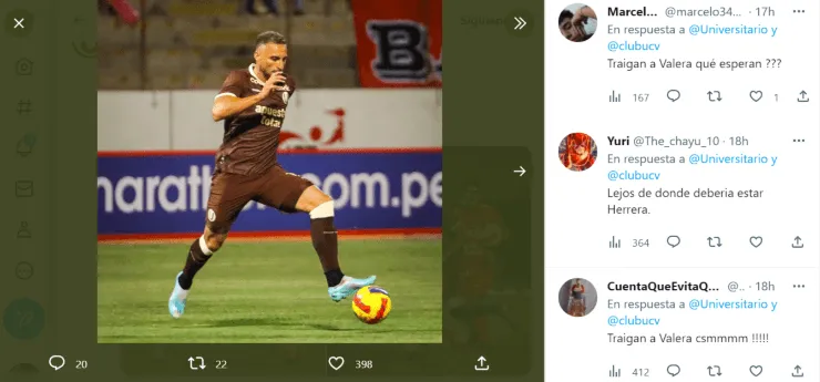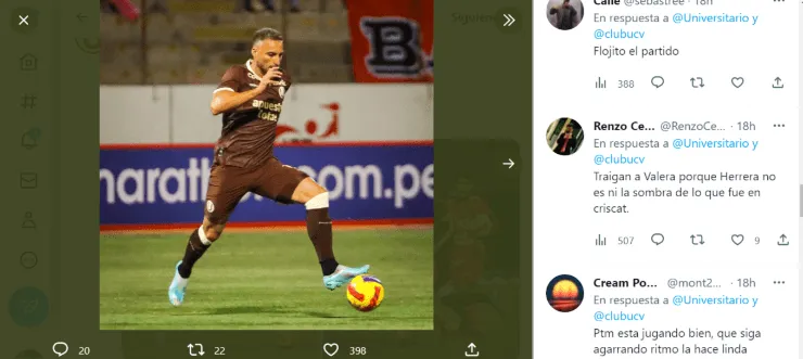 “Traigan a Valera porque Herrera no es ni la sombra de lo que fue en Cristal”, “Hoy se notó que Emmanuel Herrera ya no es el mismo. No es el Herrera que jugaba en Sporting Cristal, las lesiones y el tiempo que estuvo de baja han repercutido en su nivel”, “Creo que a Herrera no le acomoda mucho jugar tan fuera del área”, se puede leer en los comentarios, luego que Universitario le dedicara una publicación a Ema.