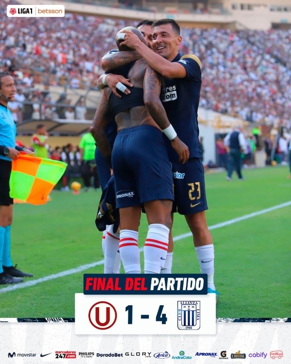 Universitario de Deportes no pudo con el poderío de Alianza Lima en el clásico del fútbol peruano por la jornada 10 de la Liga 1 en el Torneo Apertura, jugado en el estadio Monumental. Los dirigidos por Álvaro Gutiérrez trataron de imponerse a los ‘Blanquiazules’ pero les fue imposible ante la demostración de juego que realizaron los pupilos de Carlos Bustos.