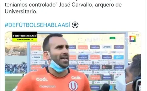 No pudo contenerse luego del empate entre Universitario de Deportes ante ADT, por la fecha 8 del Torneo Clausura de la Liga 1. Jugándose en el estadio Municipal Unión de Tarma, el portero José Carvallo no se guardó nada y cuestionó el accionar de su equipo.