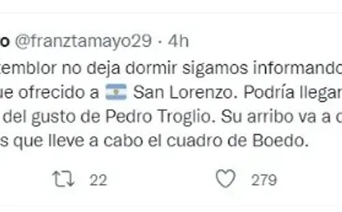 De cualquier modo, en base a la publicación de Franz Tamayo, las negociaciones también pasarían por cómo se va moviendo el mercado de fichajes de San Lorenzo. Realizando una intensa temporada, el club argentino solo ha anunciado, hasta el cierre de esta nota, promociones de jugadores de la reserva a la profesional.