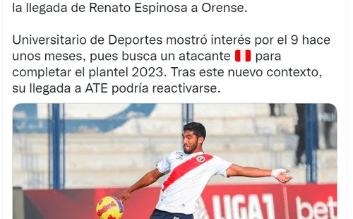 Este es el caso del delantero peruano Renato Espinosa que se frustró su pase al fútbol ecuatoriano; sin embargo, aún podría cambiar de equipo para el año 2023, es que según el periodista Marcello Merizalde, el jugador tendría el premio consuelo de llegar a la U.
