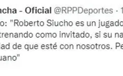 “Roberto Siucho es un jugador de la casa. Por el momento está entrenando como invitado, si su nacionalidad sale se podría activar la posibilidad de que esté con nosotros. Pero por el momento él no es ciudadano peruano”, sostuvo para el medio radial.