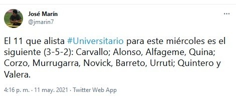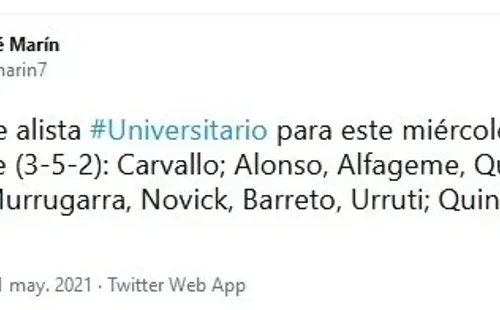 Además, hay que decirlo, insistiría con el 3-5-2 que ya le dio resuados. La información la brindó de Líbero, quien además confirmó el regreso de Quina y Valera al equipo titular.