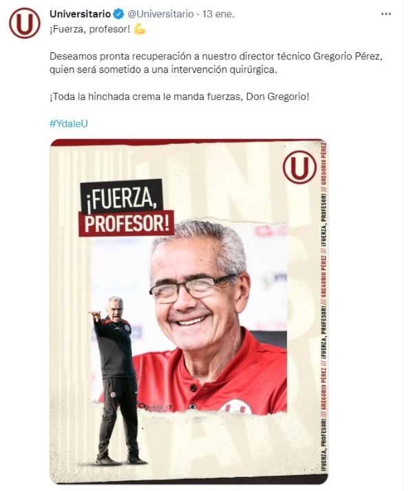 Hace unos días, el técnico Gregorio Pérez fue hospitalizado tras sufrir una complicaciones de salud. El asunto clínico preocupó a todos los hinchas de Universitario de Deportes y al ámbito del futbol, quienes se asombraron tras lo sucedido. El estratega uruguayo fue atendido inmediatamente por el cuerpo médico ‘merengue’ quienes decidieron internarlo en una clínica local.