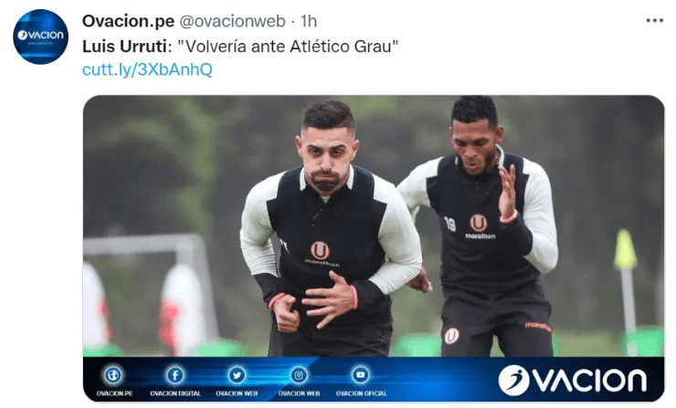 “Si todo marcha bien, volvería ante Atlético Grau. Estoy feliz de volver a tener contacto con la pelota y entrenar con mis compañeros. El equipo ha sido irregular, hay que mirar hacia adelante. La idea es campeonar el Torneo Clausura, pero si no se logra el objetivo es entrar a una copa internacional”, finalizó Luis Urruti.
