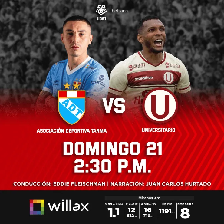 El duelo deADT frente a Universitariose disputará este domingo 21 de agosto desde las 3:00 p.m. en el estadio Municipal Unión de Tarma, en duelo correspondiente por la fecha 8 del Torneo Clausura. La transmisión, para esta oportunidad, estará a cargo deWillax TV, canal que podrá verse por señal abierta.