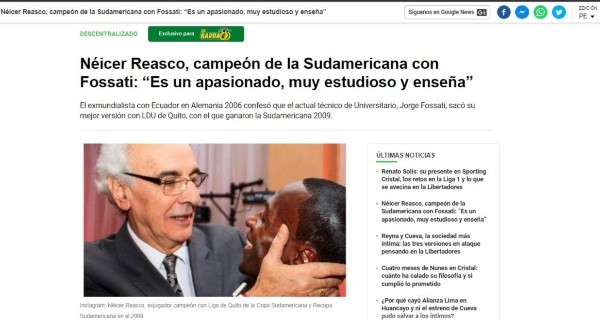 El gran capitán del LDU de Quito, campeón de la Copa Sudamericana y Recopa, Néicer Reasco, charló con Diario Depor. Ahí contó cosas sobre su relación cercana con el principal técnico del cuadro merengue. Quien llegó para acomodar la crisis que dejó Carlos Compagnucci, por los malos resultados e interna complicada.