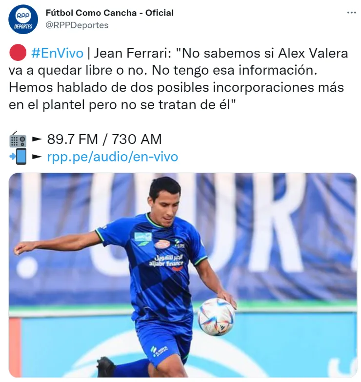 Jean Ferrari, administradordel club, le concedió una entrevista al programa Fútbol como Cancha de RPP, donde se refirió a diversos temas que abordanal club. No obstante, también dio detalles de la situación de Alex Valera.