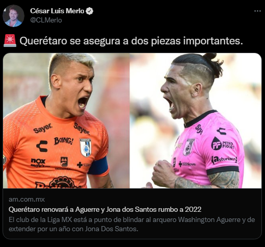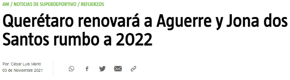 Desde ‘AM’ señalan lo siguiente: “Querétaro renovará a Aguerre y Jona Dos Santos rumbo a 2022”. Precisando la actualidad del atacante uruguayo, quien no tuvo grandes momentos dentro de competencia por las constantes lesiones. Pero, aun así, en 9 partidos marcó 4 goles fundamentales, los cuales le bastan para quedarse un tiempo más.