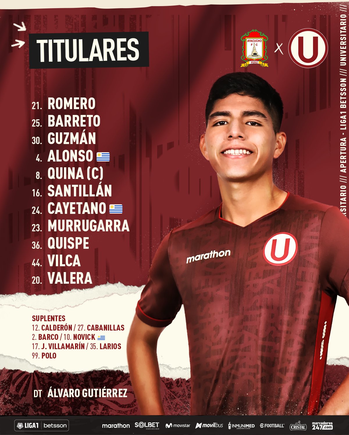 “Romero, Guzmán, Alonso, Quina, Barreto, Santillán, Cayetano, Murrugarra, Vilca, Quispe y Valera”. Y como ya es una sana costumbre. Universitario de Deportes confirmó este adelanto del comunicador social mejor informado en el universo ‘crema’. A continuación analizaremos las modificaciones.