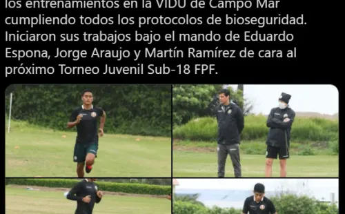 “Al mando de Eduardo Espona (Jefe de la Unidad Técnica de Menores), Jorge Araujo (Coordinador de la Unidad Técnica de Menores) y el comando técnico conformado por Martín Ramírez (Director técnico), Milton Huamán (Preparador físico) y Max Coronado (Preparador de arqueros), la Sub-18 de Universitario entrenó esta mañana en la VIDU de Campo Mar. Esta práctica marcó la vuelta a los entrenamientos después de casi un año y medio sin actividad en fútbol de menores”. Informa la institución merengue en su página web principal.