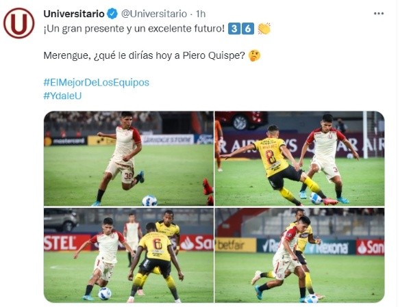 Finalmente, José Luis Carranza resaltó la actuación del Barcelona SC tras la performance de sus jugadores: “El arquero de Barcelona tapó muy bien, tiene jugadores jóvenes, con condición, de buena técnica y lo demostraron. Jugaron bien y se encontró con un equipo que buscaba el resultado, perdimos muchas ocasiones y no se dio“, señaló.