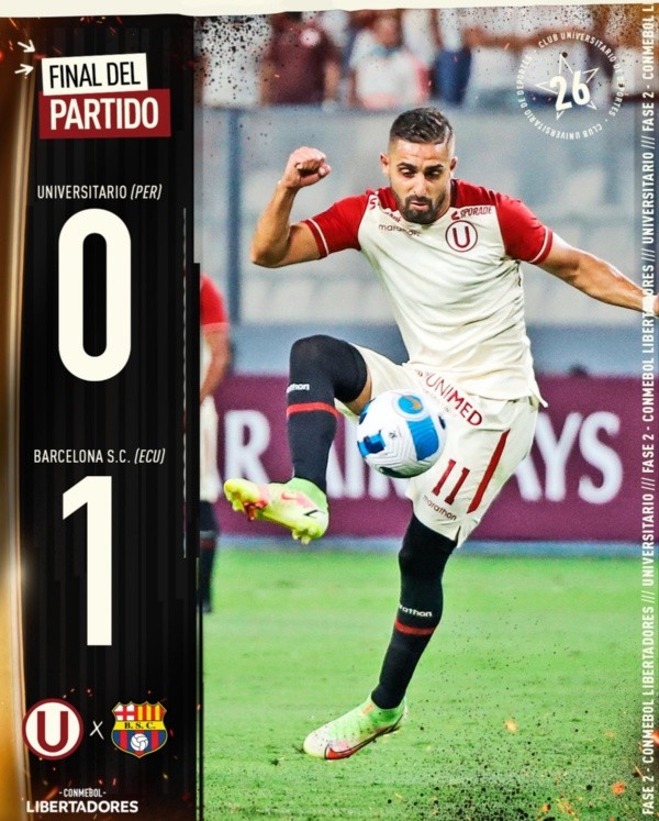 Luego de esta derrota los dirigidos por Ángel Gutiérrez quedaron sin chances de seguir en la Copa Libertadores y tampoco de clasificar a una Copa Sudamericana. Los ‘cremas’ tendrán que pasar la página y enfocarse al 100% en la Liga 1. Este sábado 5 de marzo,Universitario de Deportes enfrentará por la quinta fecha a Deportivo Municipal en el estadio Iván Elías Aguirre de Villa El Salvador.