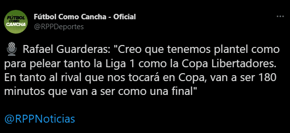 “Creo que tenemos plantel como para pelear tanto la Liga 1 como la Copa Libertadores. En tanto al rival que nos tocará en Copa, van a ser 180 minutos que van a ser como una final”. Eso fue lo que explicó ‘El Rafa’, cuando se le preguntó la proyección según lo que va descubriendo en los trabajos.