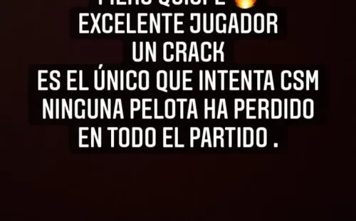 En su cuenta de Instagram, ‘La Pulga’ colocó la siguiente historia dándole la derecha al formado en la ‘Academia Héctor Chumpitaz’: “Piero Quispe, excelente jugador. Un crack. Es el único que intenta, ninguna pelota ha perdido en todo el partido”. Y como era de esperarse, automáticamente se convirtió en contenido viral.