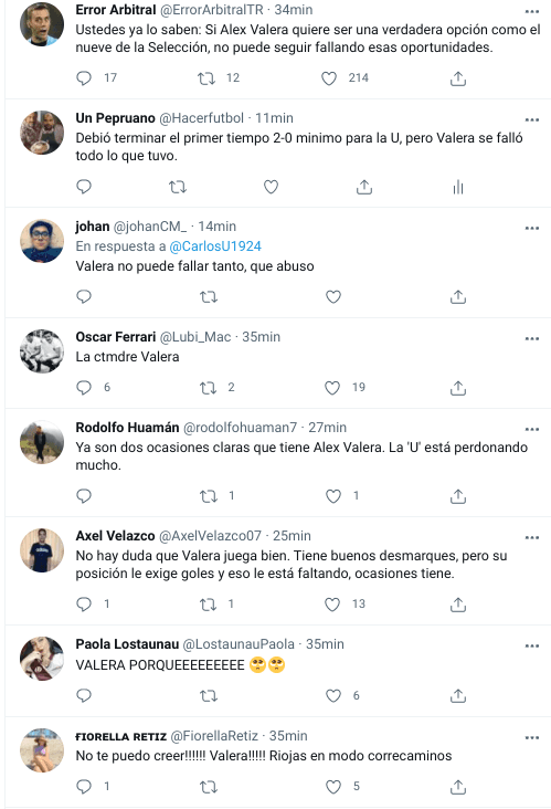 Los hinchas, igual, no ignoraron todas las fallas de los atacantes merengues. Fue, sobretodo, Alex Valera quien recibió críticas. El delantero tuvo como tres mano a mano y no metió ni uno. Por eso, se hizo viral. Así, se hizo tendencia. Les dejamos algunos comentarios.