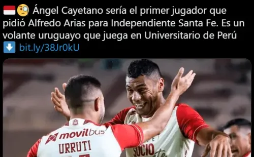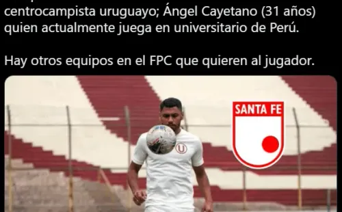 Desde ahí se viralizó esta información, y portales como ‘El Deportivo’ lo replicaron tras contrastar con fuentes de ese país: “Ángel Cayetano sería el primer jugador que pidió Alfredo Arias para Independiente Santa Fe. Es un volante uruguayo que juega en Universitario de Perú”. Además, también estaría siendo seguido por el Junior de Barranquilla. Sería una salida inimaginable.