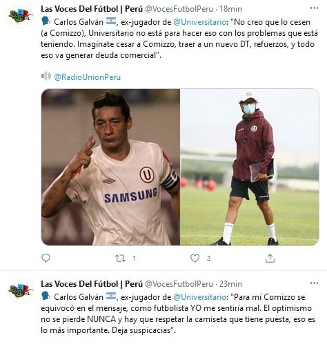 Sobre una posible despedida del DT concluyó: “No creo que lo cesen (a Comizzo), Universitario no está para hacer eso con los problemas que está teniendo. Imagínate cesar a Comizzo, traer a un nuevo DT, refuerzos, y todo eso va generar deuda comercial”.