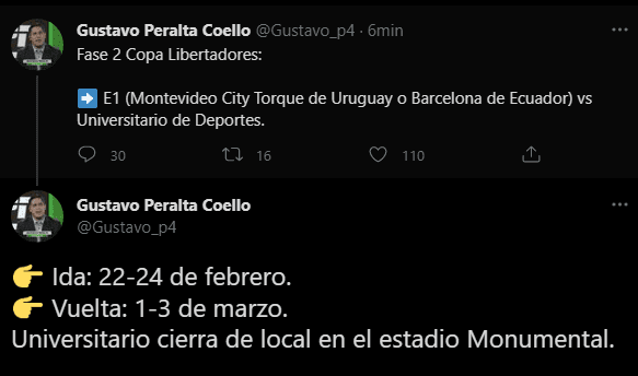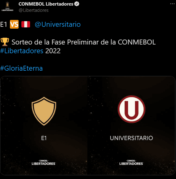 Por la fase 2 de Copa Libertadores 2022. La “U” deberá enfrentar al vencedor del duelo entre Montevideo City Torque y Barcelona de Ecuador. Eso está definido absolutamente. El vencedor de este versus mencionado llegará con el seudónimo de “E1”.