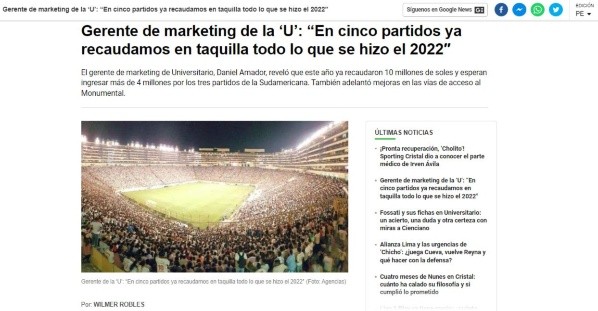 De la misma forma, lo importante será darle facilidades al fiel seguidor, las veces que la “U” juego como local: “El estadio puede albergar hasta ochenta mil personas, sesenta mil en tribuna y veinte mil en palco, la fiesta que se genera a través de la presión es muy fuerte. Además, el ingreso económico que se puede sumar en tribuna. Por la Copa Sudamericana tenemos tres partidos y pensamos recaudar más de cuatro millones de soles por taquilla. Es lo que esperamos como base. Estamos muy interesados y felices de poder generar comodidad al hincha, que puedan gozar los beneficios en el estadio”.