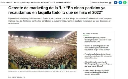 Ahora, vamos a lo importante e informativo. El propio gerente de marketing, Daniel Amador, en una entrevista para el Diario Depor contó cómo avanzó su gestión mediante promociones, para que el público vaya en masa hacia el Estadio Monumental “U”. Lo cual está dejando réditos positivos dentro de tienda crema, dinero fresco para una inversión segura.