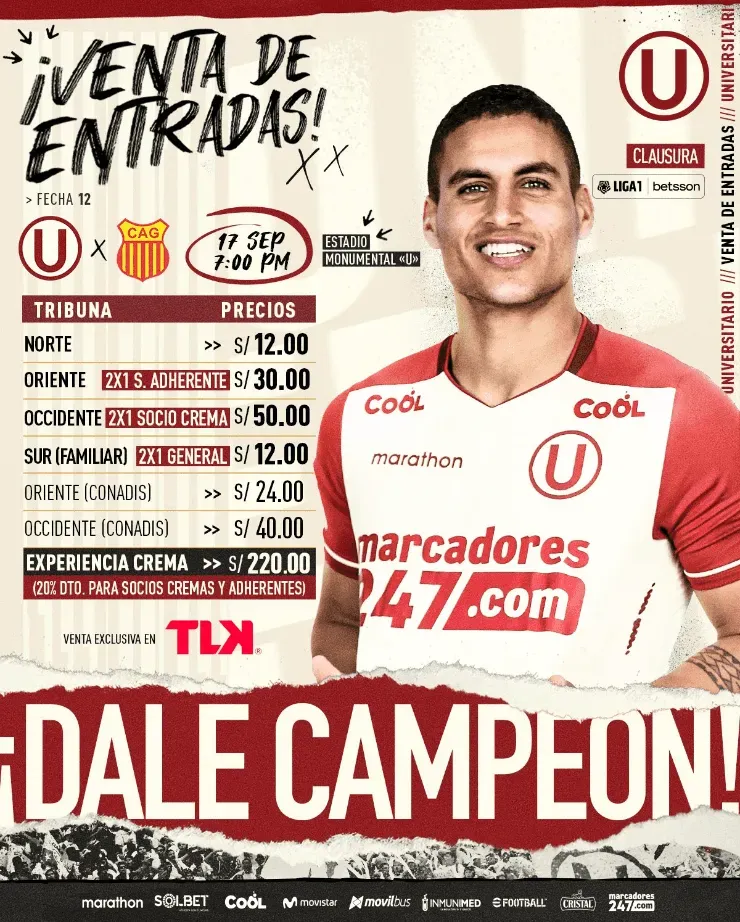 Universitario de Deportesenfrentará este sábado 17 de septiembre al Atlético Grau, que viene sorprendiendo en el Torneo Clausura. El equipo piurano tienela misma cantidad de puntos (24) que el líder Sporting Cristal, pero una menor diferencia de goles lo hace posicionarse en el segundo casillero. El partido entre cremas y albos se jugará en el Estadio Monumental desde las 7:00 p. m.