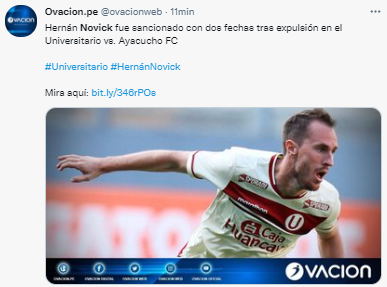 Radio Ovación notificó lo siguiente: “Tal como se dio a conocer en las últimas horas, el ’10’ de Universitario fue sancionado con un total de dos jornadas, en las cuales deberá apoyar a sus compañeros desde afuera del campo”. Algo incómodo para las planificaciones de Ángel David Comizzo.