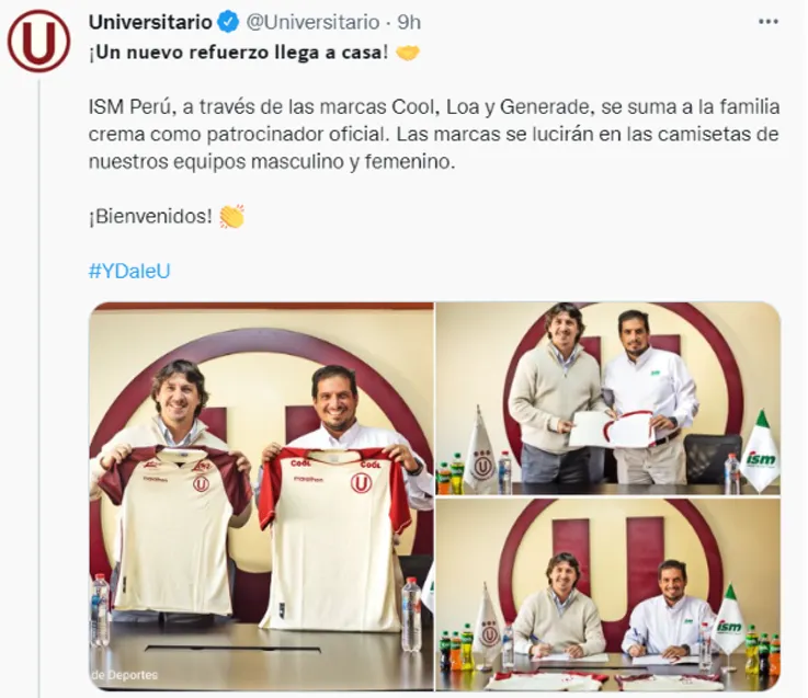 Universitariode Deportes sumó a un nuevo socio estratégico por los siguientes dos años. Este acuerdo comercial inyectará una gran suma económicaal club, proyectando ingresos que triplican la cifra del contrato que ya existía en la categoría de bebidas. Además, dentro del contrato se estipula que la empresa también auspiciará al equipo femenino de la ‘U’.
