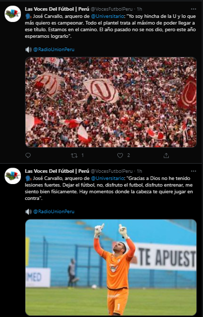 Finalmente, no quiso correrle al reto del clásico que está próximo a jugarse. Alianza Lima es el rival máximo para José Carvallo, quien defiende con todas sus capacidades la portería de Universitario: “El clásico es el partido más importante del año para nosotros”. Concluyó el capitán de Ángel David Comizzo.