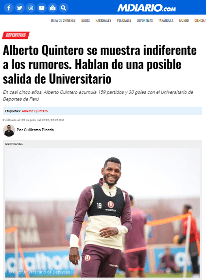 Porque un periodista de reconocida trayectoria en el país de Centroamérica soltó una bomba. Donde explicaba los motivos de su inminente salida de Universitario de Deportes. Este hecho, como bien explicamos, causó una ola de comentarios fuertes contra el delantero, ya que lo veían como una pieza fusible.