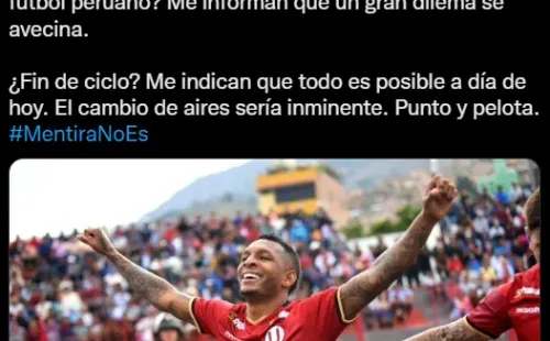 Con la afirmación que termina dejando con más dudas de certezas al fanático del extremo: “¿Fin de ciclo? Me indican que todo es posible a día de hoy. El cambio de aires sería inminente. Punto y pelota. #MentiraNoEs”. Aunque la opinión del hincha, es que se marche pronto, seguramente habrán novedades en las próximas horas.