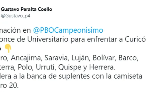 Para el partido que se jugará en la Noche Albirroja, los cremas presentarán un once distinto al equipo que presentó Carlos Compagnucci en sus primeros compromisos de este 2023, conRomero, Ancajima, Saravia, Luján, Bolívar, Barco, Calcaterra, Polo, Urruti, Quispe y Herrera.