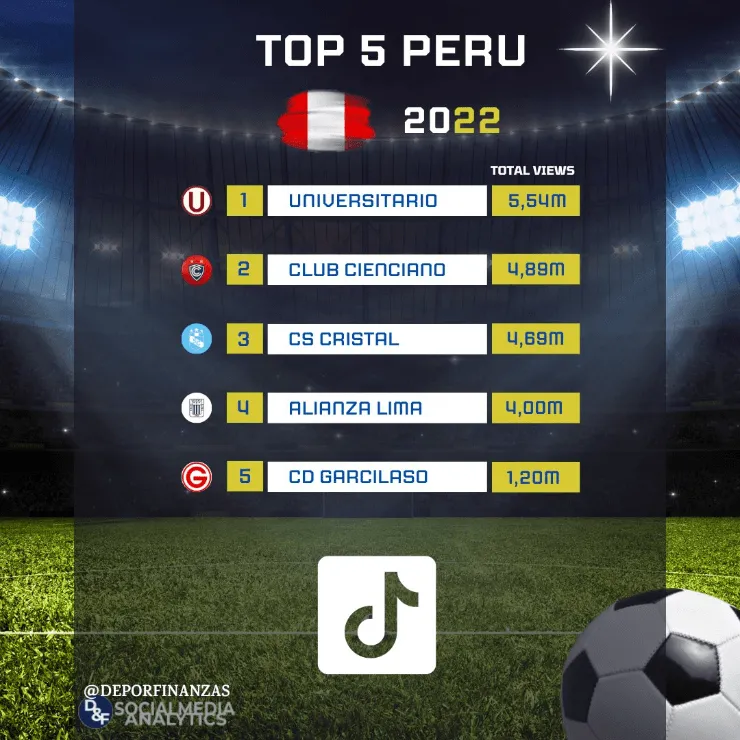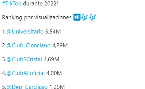 A pesar de no haber jugado la semifinal de la Liga 1, Universitario de Deportes fue catalogado como el club más popular del 2022. Es que según el portal internacional, Deportes y Finanzas, mostró un ranking de los cinco equipos peruanos más famosos en la web número de videos cortos, TikTok.