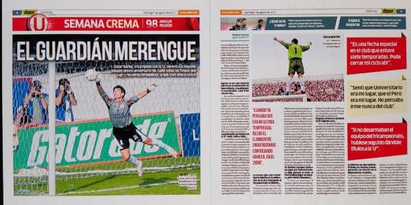 El arquero argentino nacionalizado peruano, que también supo jugar con ‘La Blanquirroja’, en una charla especial con el ‘Diario Depor’, con motivo del nuevo aniversario 98°del equipo ‘crema’. Recordó los momentos más considerables de su carrera, y uno de ellos fue esa final contra Alianza Lima. Donde la “U” salió campeón frente al rival de toda la vida, marcando un antes y después para muchos.