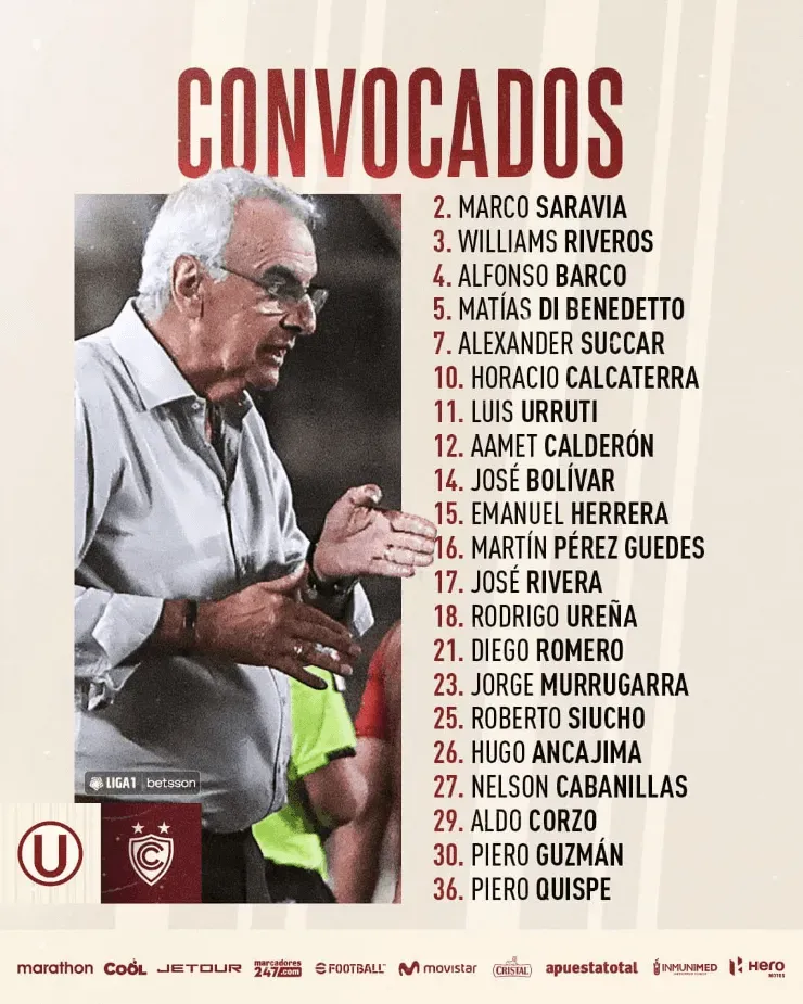 Como se sabe, Jorge Fossati no podrácontar con José Carvallo, Andy Polo y Alex Valera, porque se encuentran con la Selechttps://bolavip.com/pe/seleccionperuanación Peruana. Así que el uruguayo a lo largo de la semana ha preparado el mejor once, para que puedan conseguir los tres puntos.