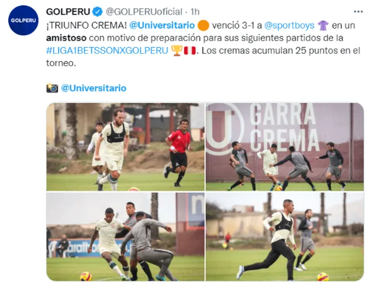 Universitario de Deportes y Sport Boys disputaron un amistoso en Campo Mar, y la victoria fue ‘merengue’ por un marcador de 2-1.Este duelo fue pactado con el objetivo de retornar de la mejor manera en el reinicio de la Liga 1, donde la ‘U’ ya no tiene chances de pelear el Torneo Apertura, sin embargo, buscarán sumar para culminar mejor ubicado en esta primera parte del año.