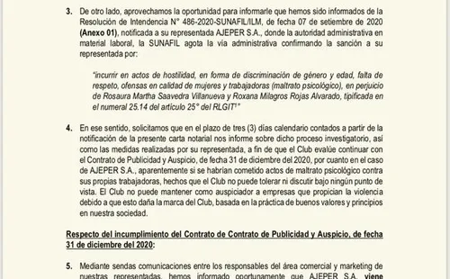 Asimismo, el equipo de Ate, solicitó a AJEPER que responda en el lapso de 3 días sobre una denuncia presentada ante la SUNAFIL, en la que se acusa a la empresa de incurrir en actos de hostilidad, en forma de discriminación de género y respeto, ofensas en calidad de mujeres y trabajadoras.