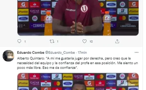 Alberto Quintero cerró una participación muy destacada vistiendo hoy la camiseta de Universitario de Deportes, sacó toda su velocidad, su picardía, además del gol al final del primer tiempo. Fiel representante de lo que busca en un jugador, el hincha merengue.