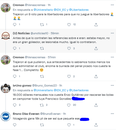Universitario de Deportes recibe esta noche a Independiente del Valle en el ‘Estadio Monumental U’. No contará con su delantero estrella, y los hinchas no perdonaron en redes sociales. Critican su poca actividad, hablando de dinero (sueldo), y mostrando su incomodidad por contratar a un delantero con historial de lesiones.