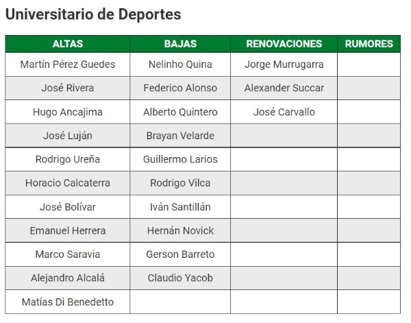Recordando que se han marchado diez futbolistas del plantel de Universitario de Deportes, el cuadro crema solo le ha renovado a tres jugadores e incorporó a once fichajes. De estos once nuevos contratos, cuatro son extranjeros y dejan un cupo para una vinculación más.