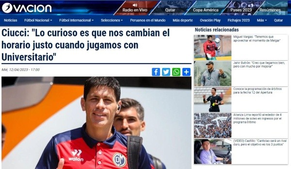 Emiliano Ciucci como hombre fuerte dentro del conjunto edil, habló en Radio Ovación, y soltó una frase para calentar lindo el partido contra la “U”. El ex Alianza Lima, Real Garcilaso, entre otros, habló sobre lo que ha sido el cambio de horario para este versus.