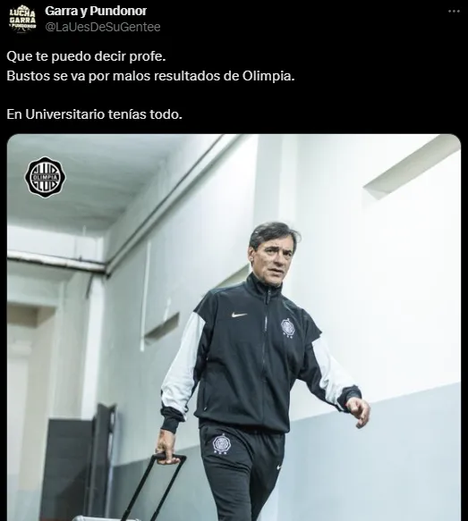 A su vez, un hincha de Universitario le dejó un mensaje de “los mejores deseos al profe“, pero otro lo criticó, aunque no descartó un regreso. “No sé deja a medio camino un proyecto, le pasó a Fossati yéndose a la selección peruana y a Bustos con Olimpia, igual el profe es apreciado en la U, y seguramente en el futuro volverá“, consideró.