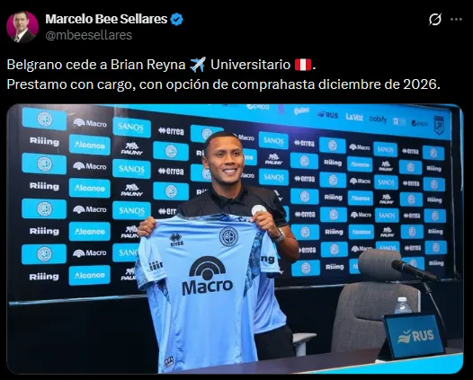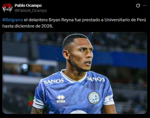 Bryan Reyna no está pasando su mejor momento en el fútbol internacional, por esa razón en Belgrano no dudaron en desprenderse de él. Tanto así que el conjunto ‘Pirata’ esta temporada no lo ha considerado ni en el banco de suplentes a la hora de los partidos de la temporada. Dejando en claro que no lo tienen en sus planes.