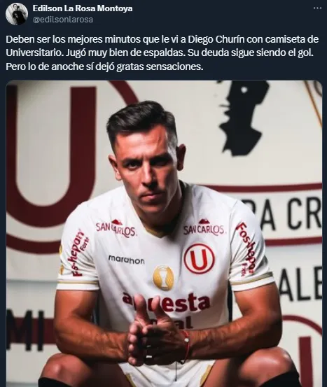 “Los que saben alguito de fútbol notaron que el aporte de Churín fue fundamental”, tiró otro hincha de la ‘U’. “Deben ser los mejores minutos que le vi a Diego Churín con camiseta de Universitario. Jugó muy bien de espaldas. Su deuda sigue siendo el gol. Pero lo de anoche sí dejó gratas sensaciones”, analizó más en detalle otro aficionado.
