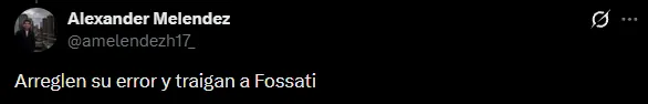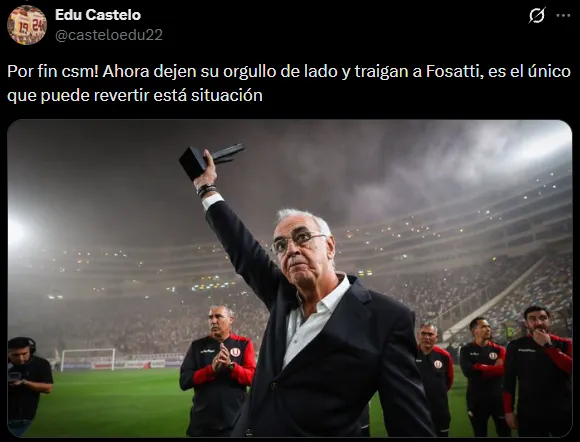 La mayoría de los comentarios apuntaron sobre Fossati, en vez de Rabanal. “Dejen su orgullo de lado (a los dirigentes) y traigan a Fossati, es el único que puede revertir la situación“, tiró un hincha en X (Twitter). “Dejemos de lado el pasado y pensemos en la U, ojalá vuelva el Nonno (Fossati)“, dijo otro fanático.