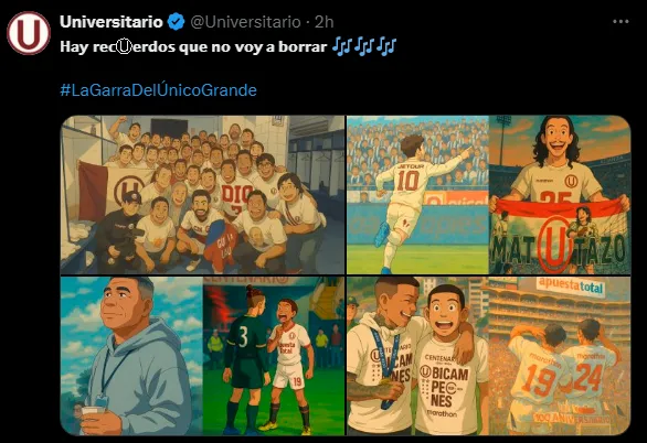 Pues ahora que está de moda el hacer imágenes con IA gracias a la nueva actualización de ChatGPT. Pues no tuvieron mejor idea en Ate que recordar los momentos del ‘Matutazo’, duelo que se dio en el estadio Alejandro Villanueva y terminó de sacar campeón al cuadro de Universitario de Deportes. Con imágenes con todo tipo de detalle recuerdan este momento que para ellos fue memorable.