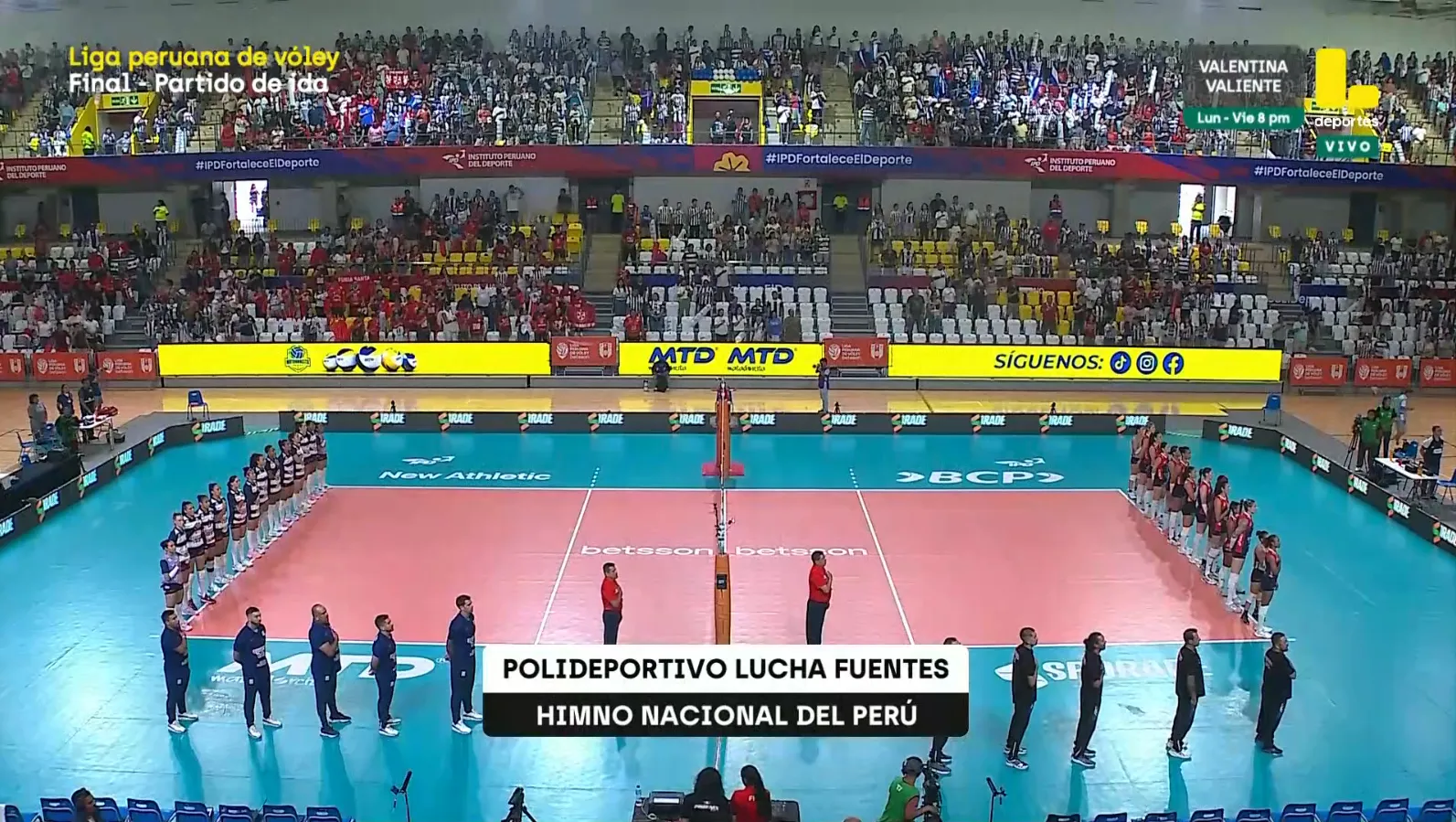 La transmisión del partido será en señal abierta por Latina, mientras que en las redes sociales la página de la Liga Peruana de Vóley pasará la transmisión. Mientras tanto, en Bolavip Perú tendremos el minuto a minuto del partido.